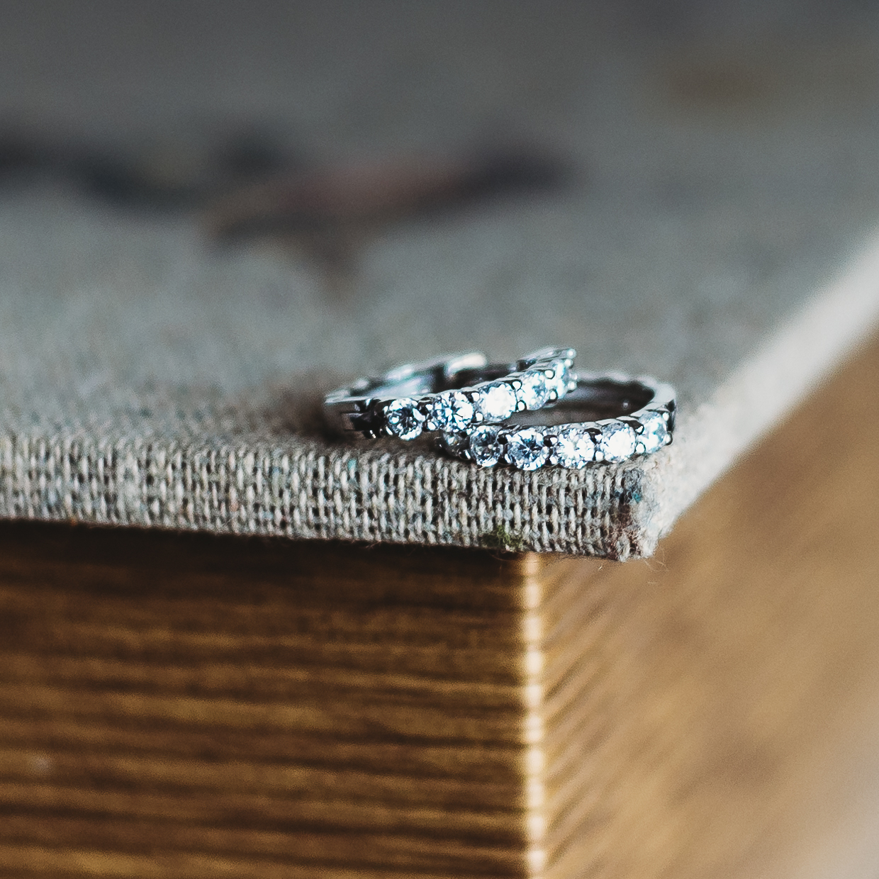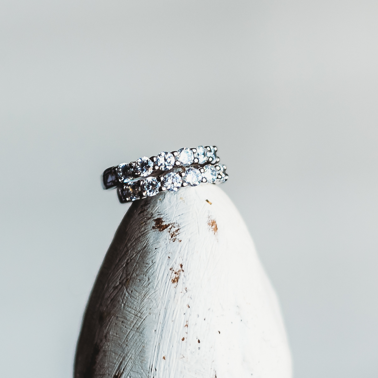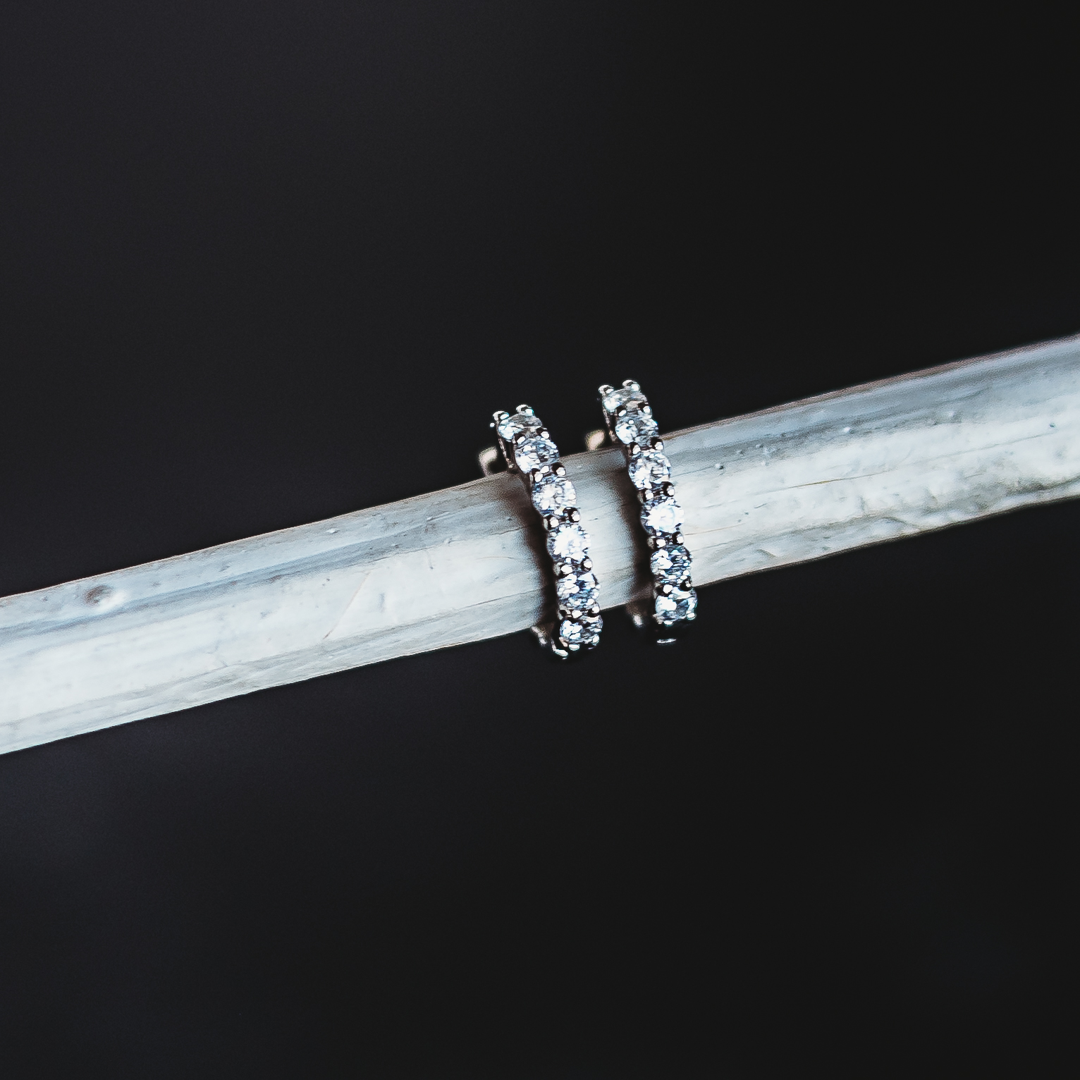 These huggies feature a half row of 6 round diamante held in a claw-setting. Perfect for layering with out Diamante Cuff Earrings!