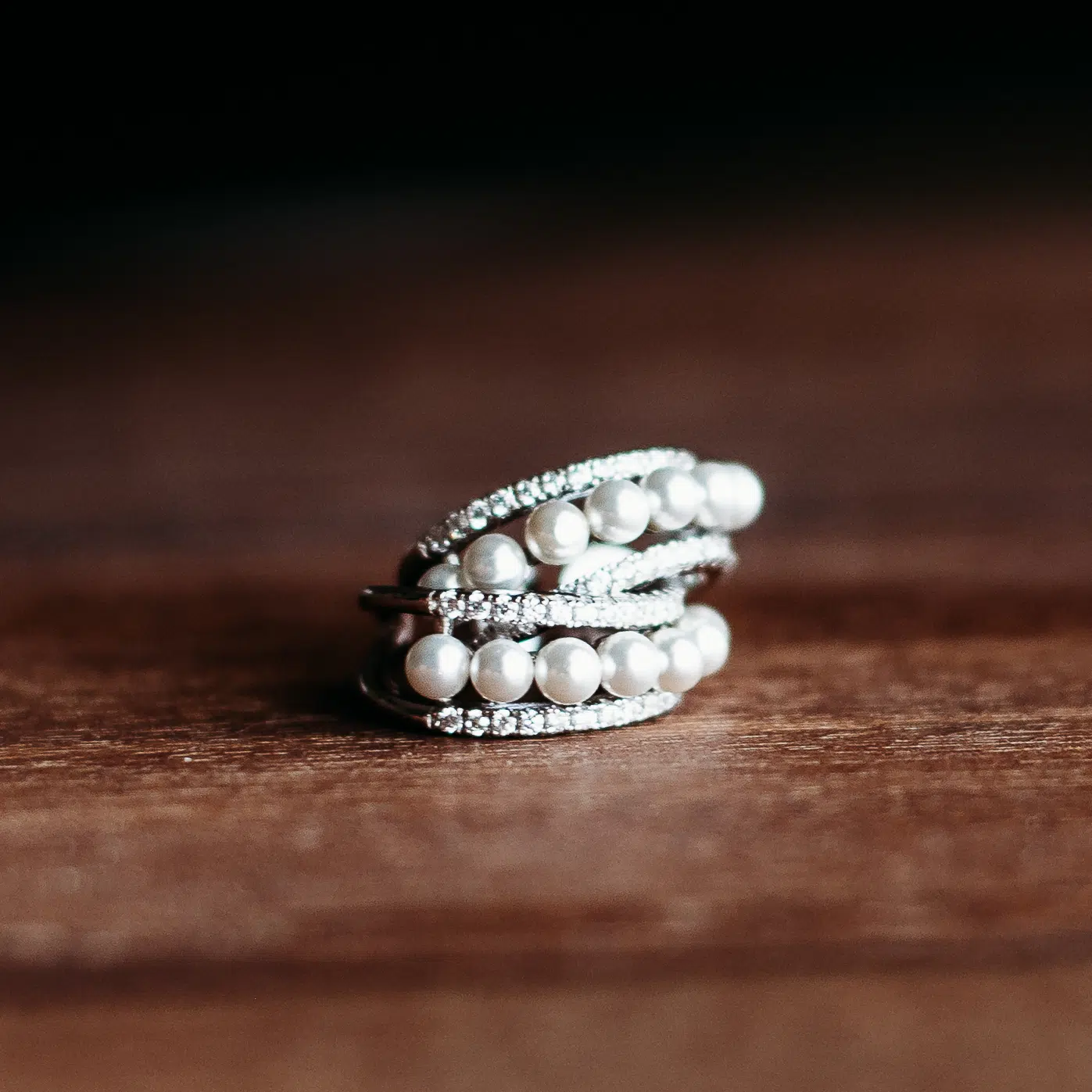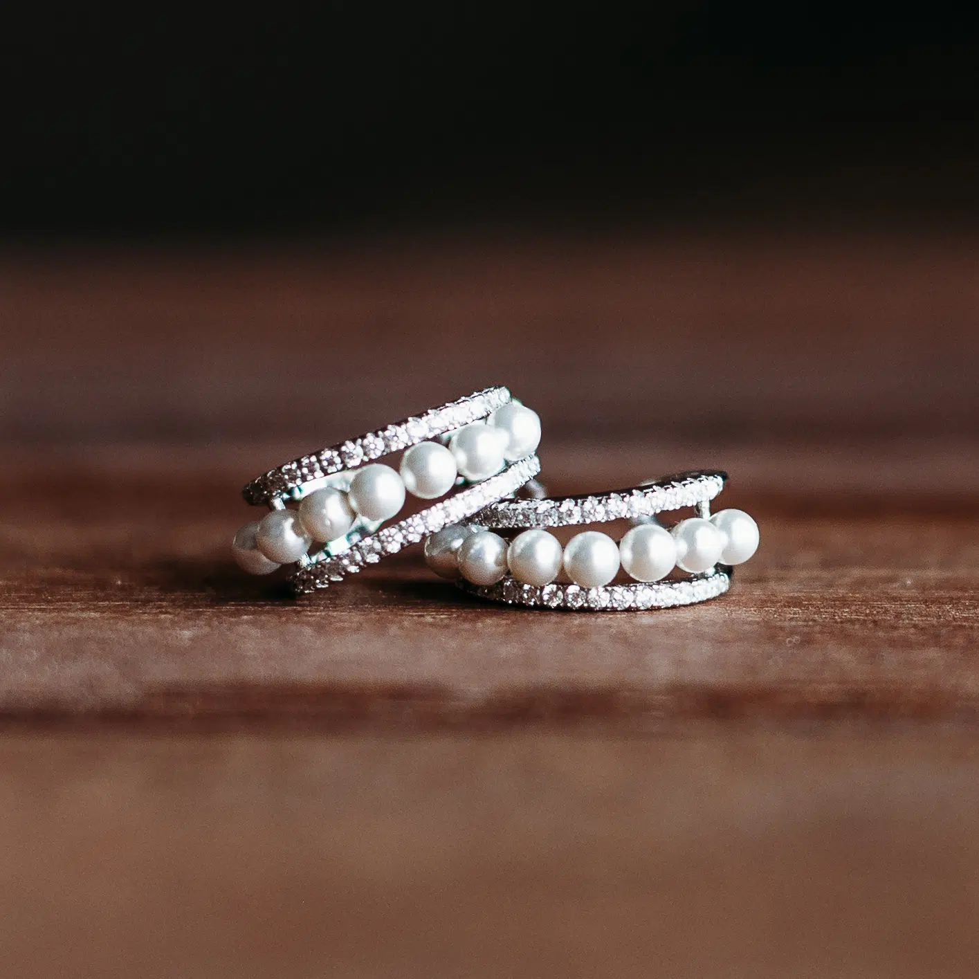 Every day hoops but make them glam. These beauties form a chunky design of peals and CZs for the perfect mix of glow and sparkle.