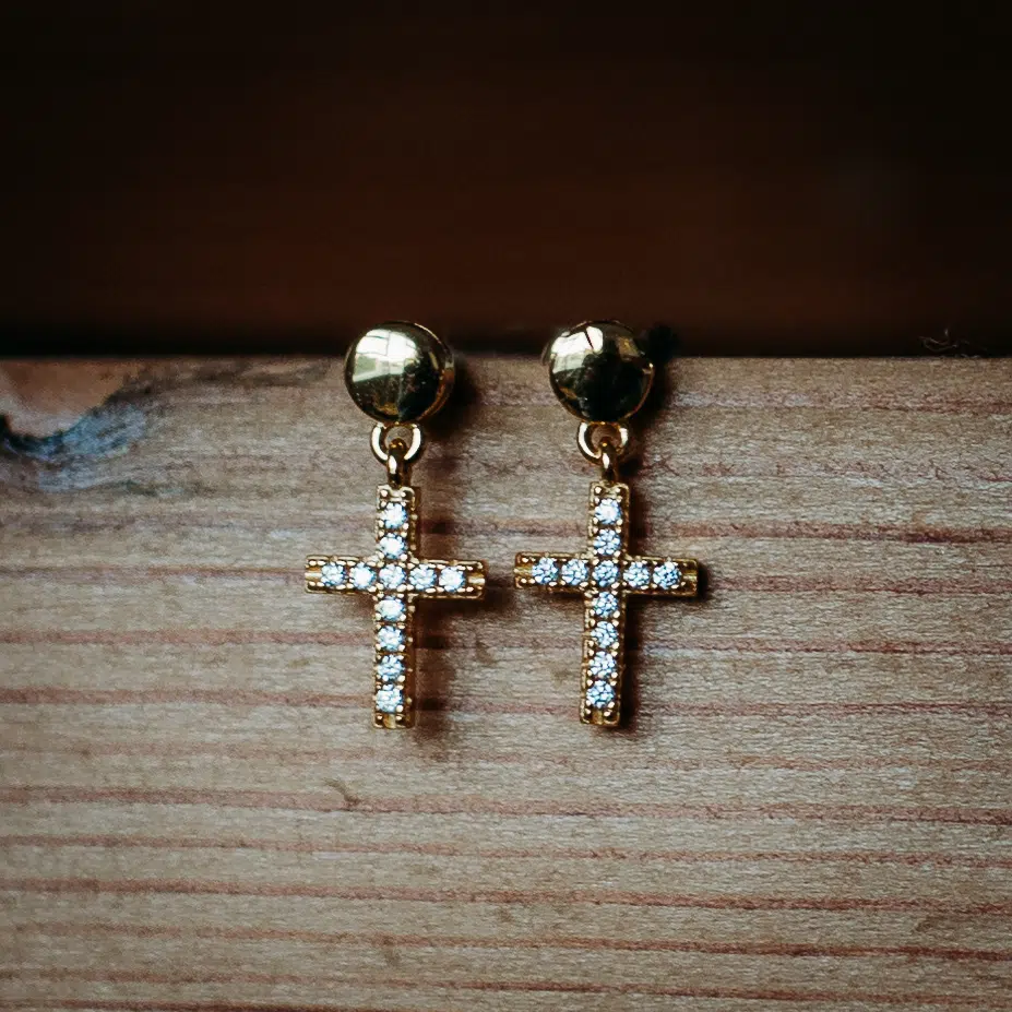 These stud earrings feature beautifully textured cross charms. We love the little dangle design which is set with the most comfortable studs. Enjoy mixing and matching with other earrings.