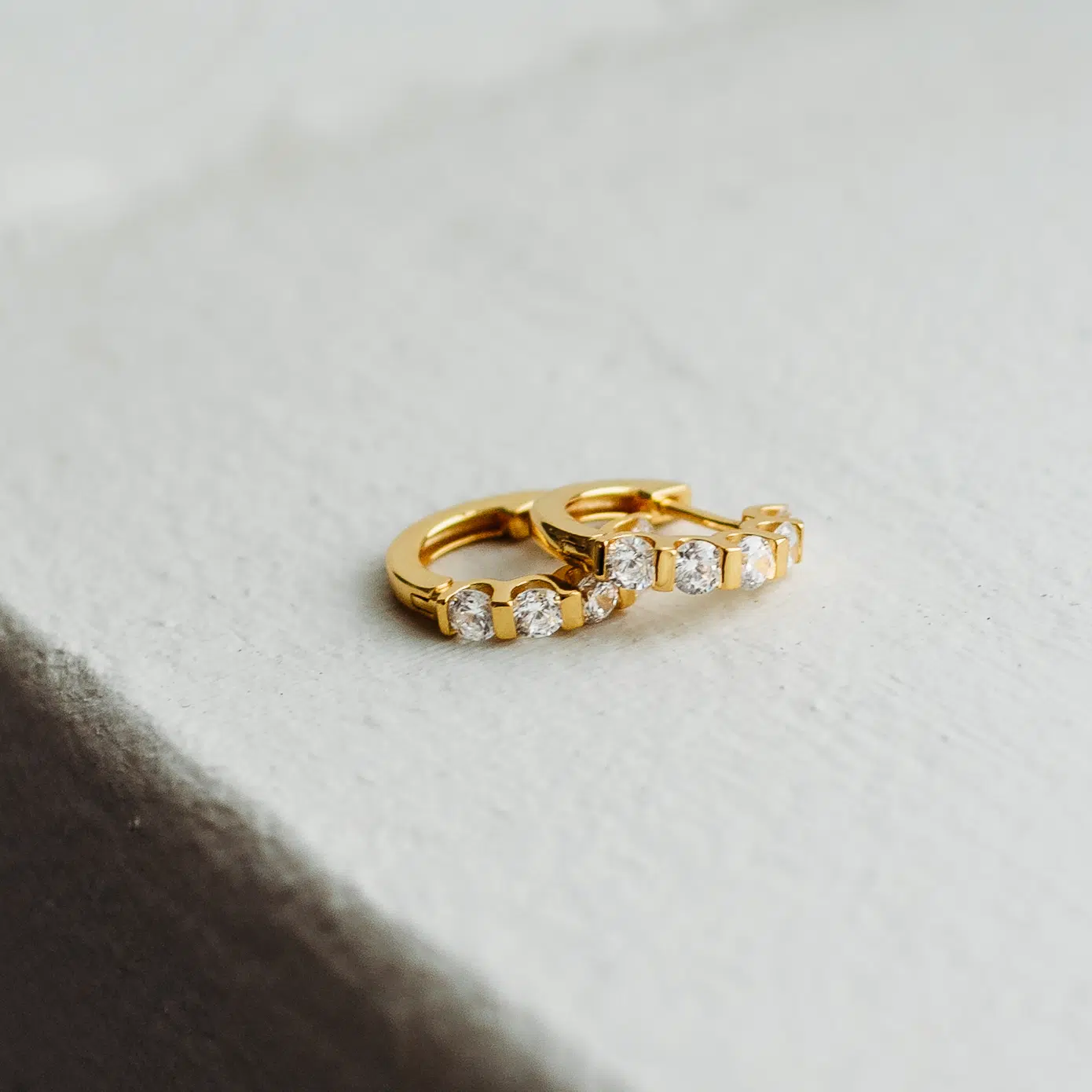 Add a hint of sparkle to your ear story with this five round prong-set diamante huggie. Mix and match them with other diamante studs and drops in our collection.